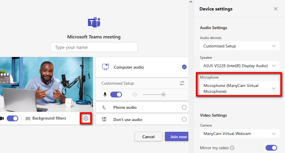 1. Set your native microphone as an Audio Source and your speakers as a Playback Device in ManyCam (see above)