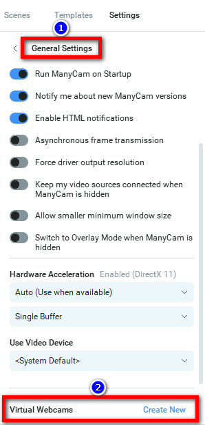 This setting is available in the General section of the ManyCam settings. (Settings > General).