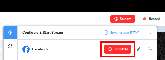 - The stream button will turn red and you will see a timer showing the duration of your live stream.