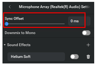 4. Adjust Sync Offset to set a custom delay for your microphone. You might need to experiment with this setting to find the correct value.