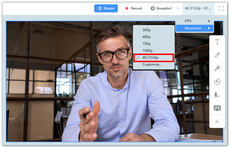 3. Close the settings and select the 4K/2160p resolution.