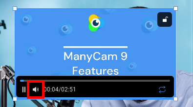 To mute a layer, click on the Audio icon in the lower-right corner of a layer.
