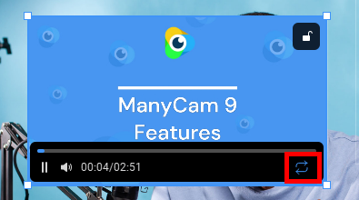 To loop a layer with video, click on the Loop icon in the lower-right corner of a layer.